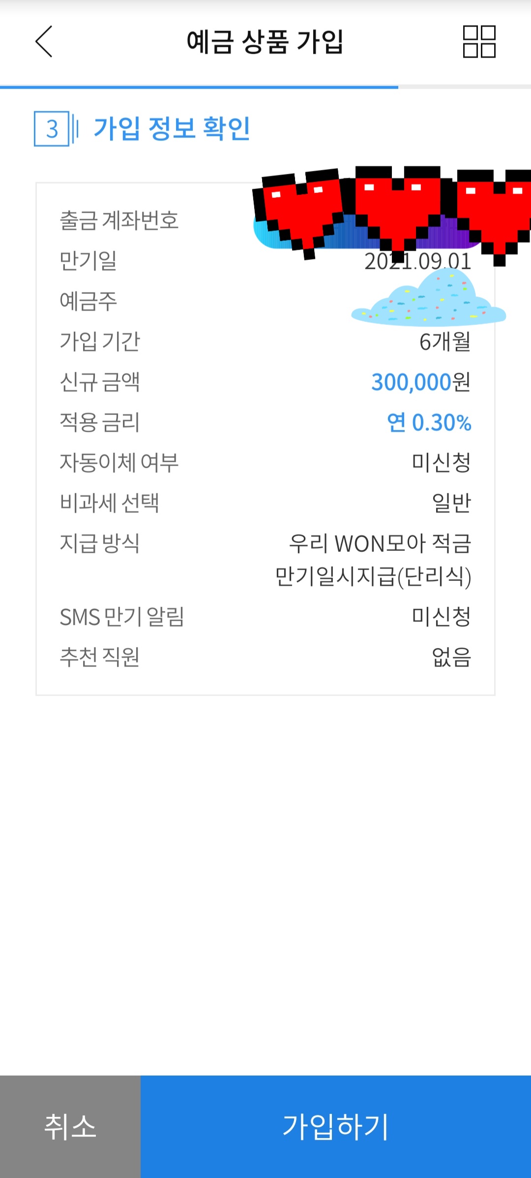 가입기간은 6개월 고정이고 금액은 최대30만원이다. 최대금액으로 가입.