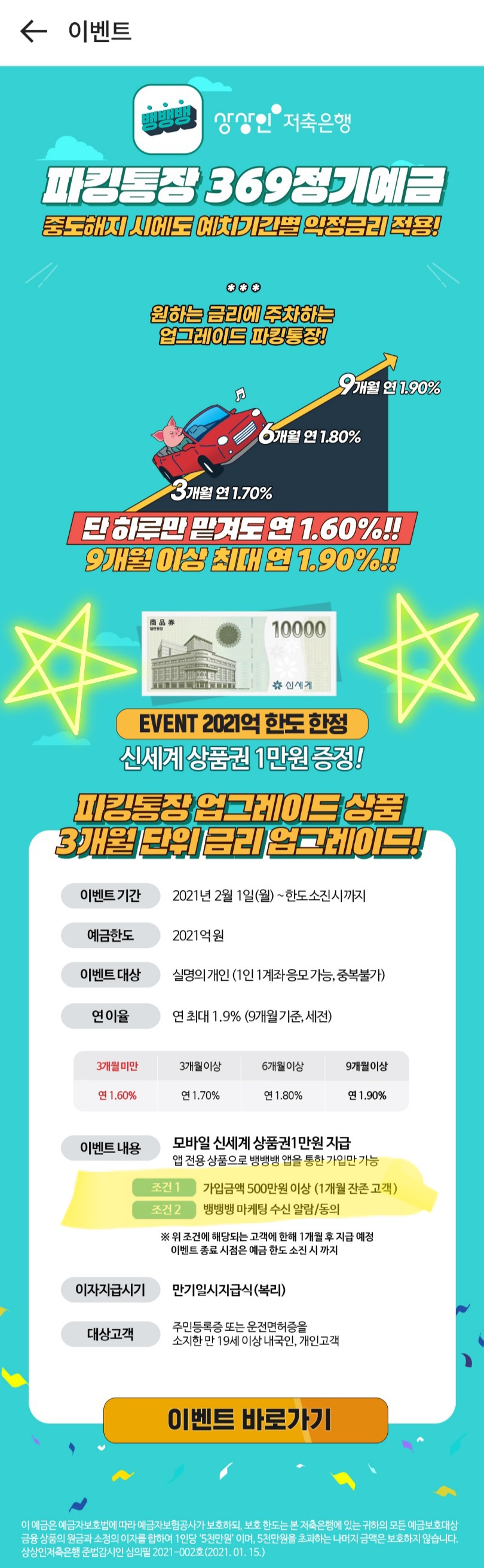 예금한도 2021억까지 이벤트는 진행한다고 하니 꽤 오랜기간 가입이 가능할 것으로 보인다.