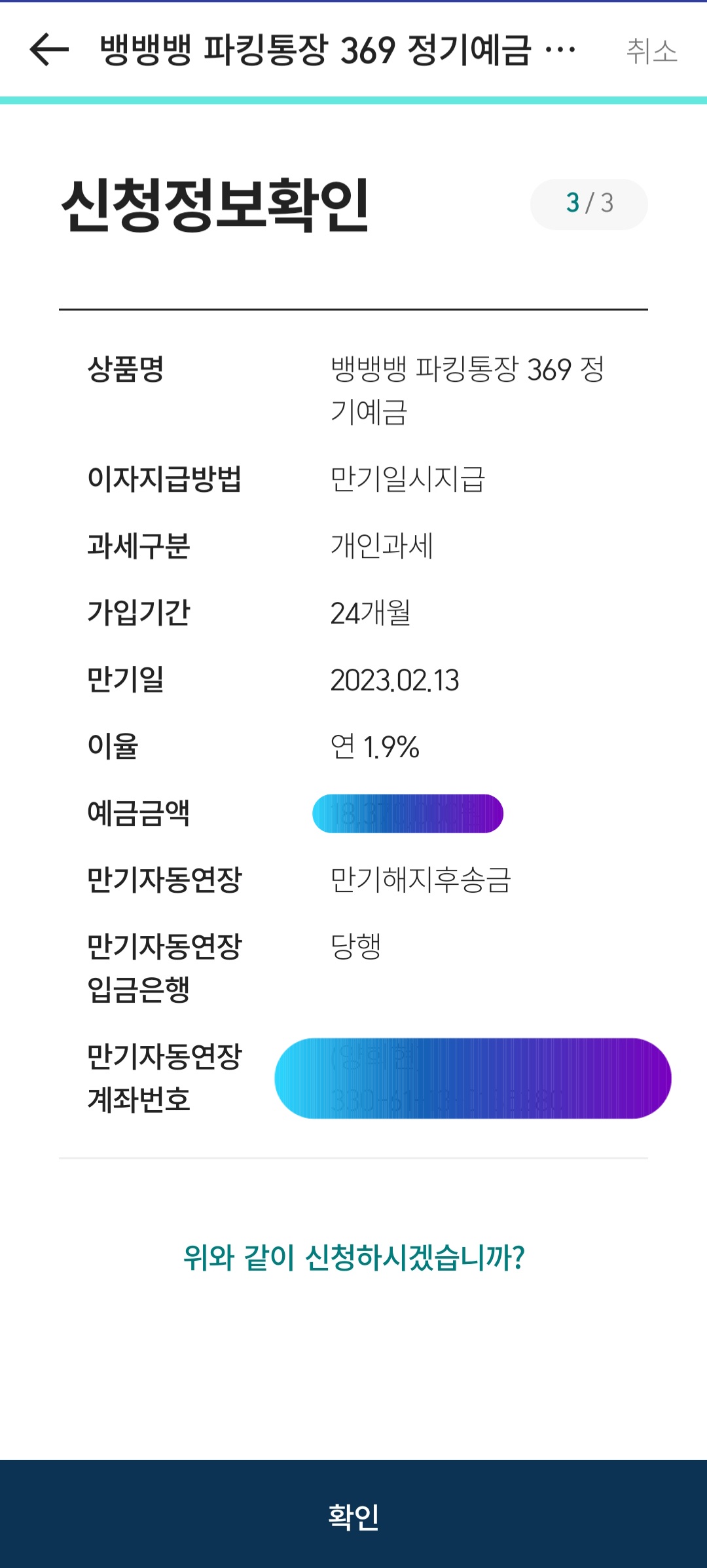 1%대의 금리지만 그래도 그냥두는것보단 나으니까.. 신청 정보까지 확인하면 가입완료!