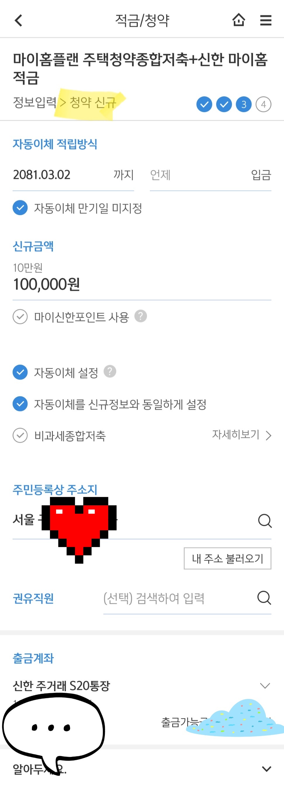 그렇게 정보입력을 하고 나면 청약신규를 가입한다.