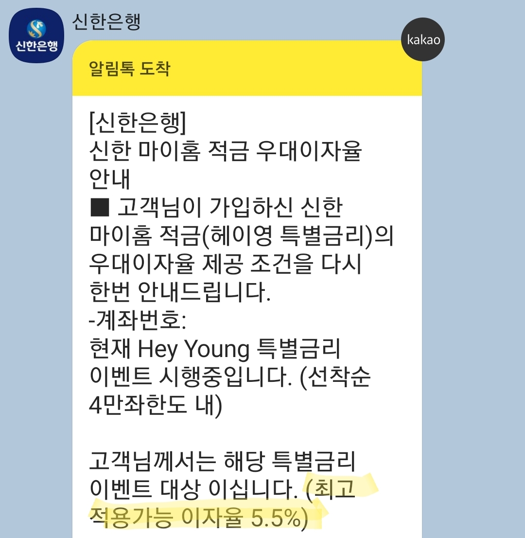 다음날 되니 만명 안에 들었는지 쿠폰과 이율안내 알림톡이 왔다