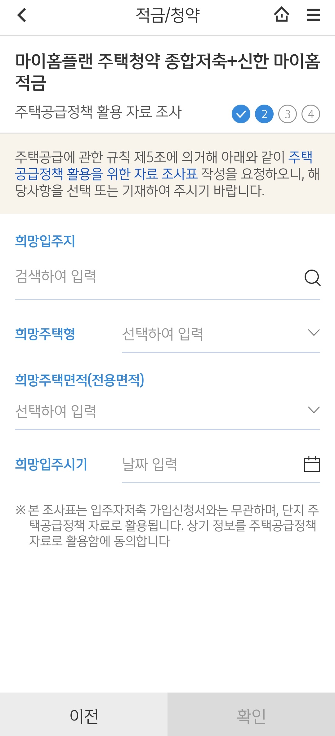 본인확인서 등록하고 나면 주택공급정책에 활용한다는 정보 입력하면 된다.